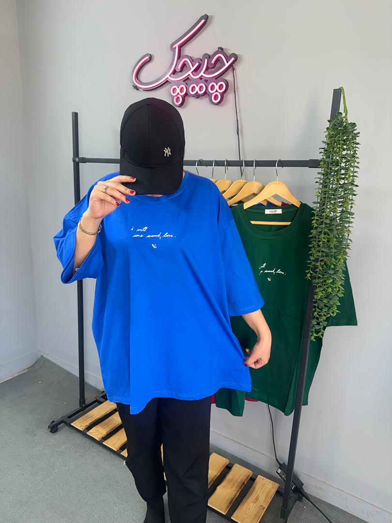تیشرت اورسایز زنانه فری سایز با چاپ LOVE و ۱۰ رنگ متنوع. راحت، شیک و مناسب استایل روزمره و خیابانی.