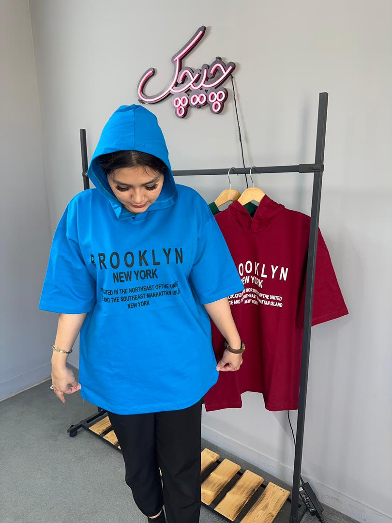 تیشرت کلاهدار طرح بروکلین، استایلی راحت، شیک و جوان‌پسند با هشت رنگ جذاب.