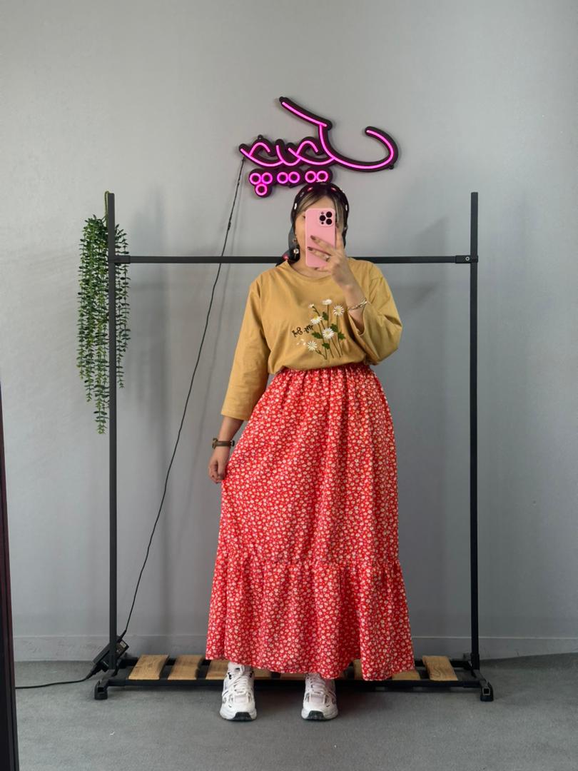دامن بلند گلگلی پایینچیندار