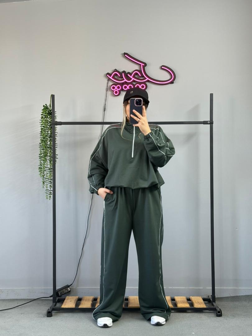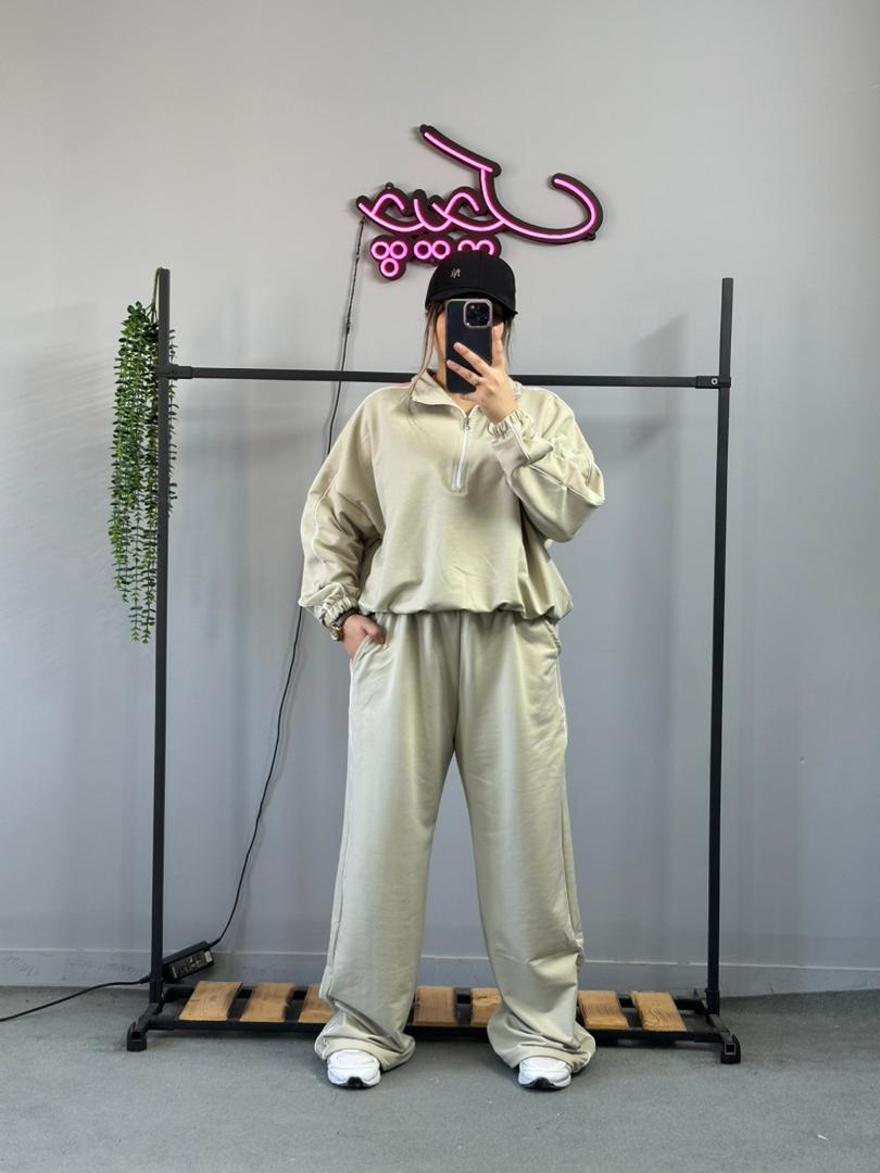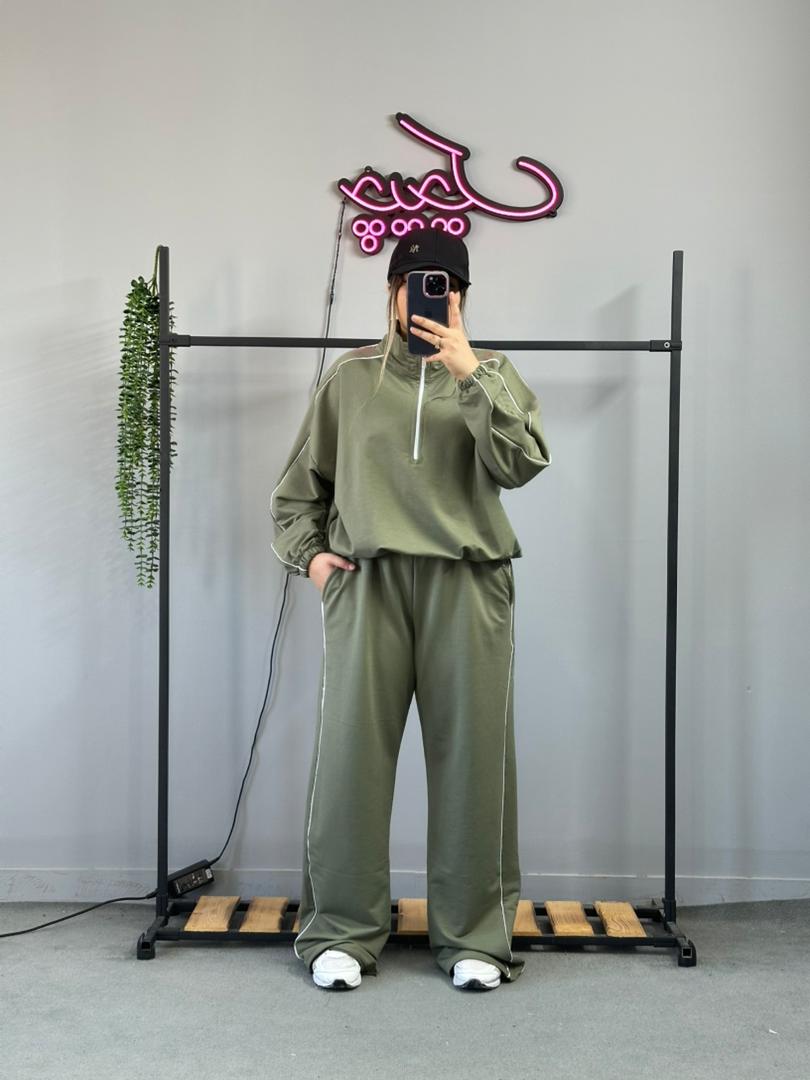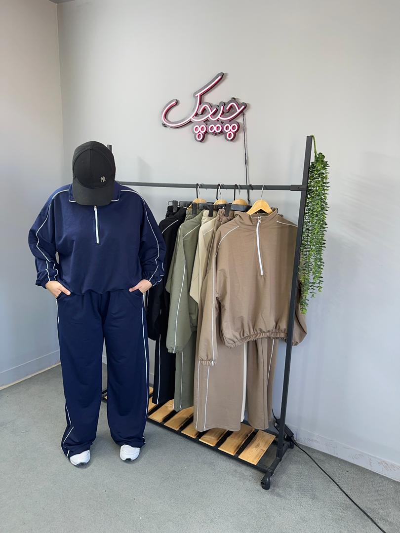 ست نیم زیپ و شلوار مغزی دوزی